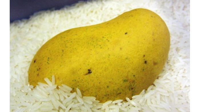 Para orang tua menyarankan untuk menyimpan buah di dalam beras agar buah cepat matang.