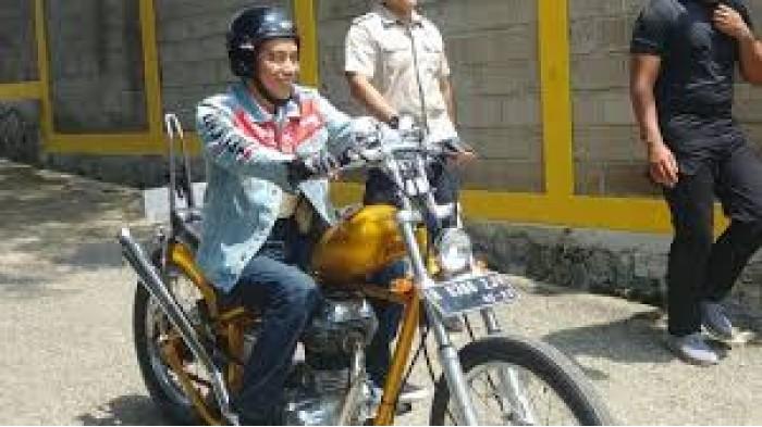 Saat itu Presiden Jokowi mengendarai motor Choperland warna emas miliknya.