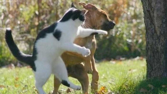 TRIBUNJUALBELI.COM - Kucing dan Anjing adalah dua hewan seteru abadi semenjak mereka ada di muka bumi.