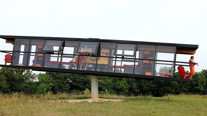 Uniknya lagi, rumah yang "hanya" berbentuk persegi panjang terletak di atas tiang setinggi 4,6m!