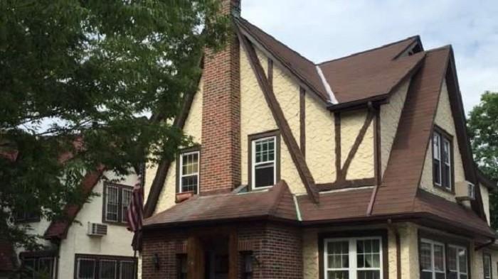 Desain rumah Donald Trump Rumah bergaya Tudor, berlokasi di Jamaica Estates, kawasan mewah di wilayah Queens.