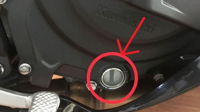 "Iya enggak perlu cek lewat dipstik, tinggal diintip lewat kaca saja," kata Eddy Yulianto, Chief Mechanic Kawasaki Super Sukses Motor Fatmawati kepada GridOto.com.