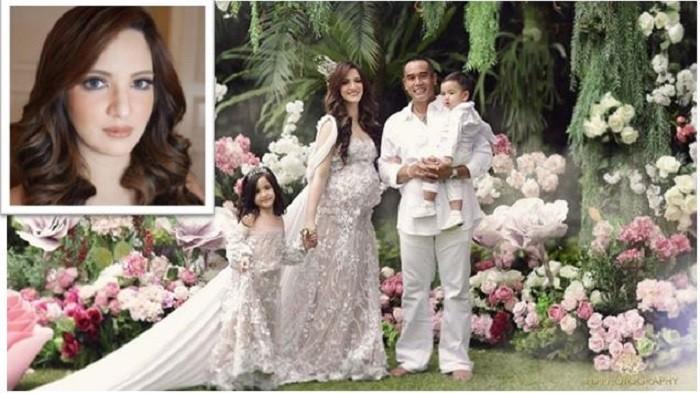 Belum lagi sang buah hati, Mikhayla Zalindra Bakrie, tampak comel sekali dengan gaun yang senada dengan mamanya.