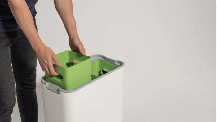 Sistem penutup ganda dan segel karet mencegah bau, dan tempat sampah tertutup lapisan anti-lengket untuk membantu pengosongan dan pembersihan.