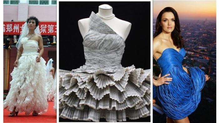 Kertas-kertas buku telepon pun bisa digunakan untuk membuat sebuah dress cantik.