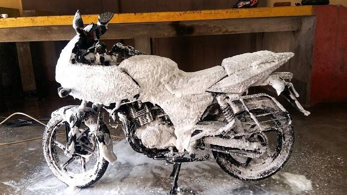 Namun meski menggunakan sampo khusus motor tetap saja bodi motor harus dilap.