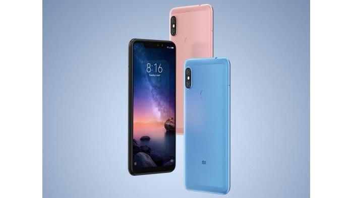 Redmi 6 Pro berlayar FHD+ 5.84" dengan notch/poni, ditenagai Snapdragon 625 dipadukan RAM 3GB/4GB, ROM 32GB/64GB, dual kamera belakang 12MP+5MP, kamera depan 5MP, baterai berkapasitas 4000 mAh.