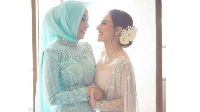 Tak hanya Irish Bella, ibunda Irish Bella yang duduk di sampingnya juga terlihat menawan dengan balutan kebaya modern berwarna hijau.
