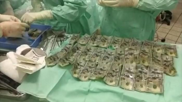 Direktur bagian bedah di rumah sakit itu, Juan Pablo Serrano mengatakan, timnya berhasil mengeluarkan 57 lembar uang pecahan 100 dolar dari perut dan usus perempuan tersebut.