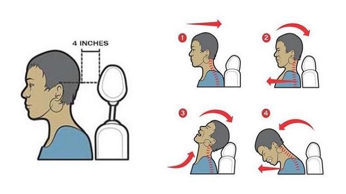 Jika tidak, setidaknya ujung headrest sejajar dengan bagian tertinggi telinga. Jarak antara kepala dan sandaran sebisa mungkin tidak lebih dari 4 inci.