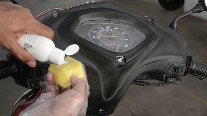 Agar kilau plastik tetap terjaga, produk trim restorer dapat diaplikasikan kembali setiap dua minggu atau setelah motor dicuci. (Otoseken/Arseen)