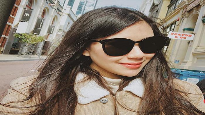 Tak berhenti sampai di situ, wanita berusia 25 tahun ini melengkpai tampilannya dengan sneakers yang nyaman digunakan.