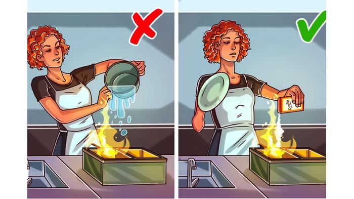 Oleh karena itu sebaiknya kita menutup api dengan handuk lembab atau menggunakan soda kue.