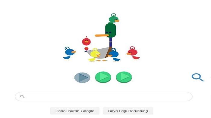 Saat mengakses laman Google.com, tampak ilustrasi 5 anak buruk dan 1 burung dewasa yang berwarna warni.