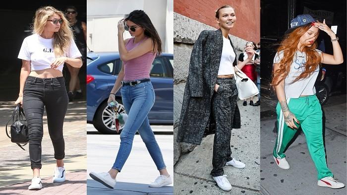 Sneaker model high-top dengan tinggi mencapai mata kaki sebenarnya sudah tren beberapa tahun terakhir, tetapi selebriti seperti Kim Kardashian dan Bella Hadid masih tetap percaya diri mengenakannya.