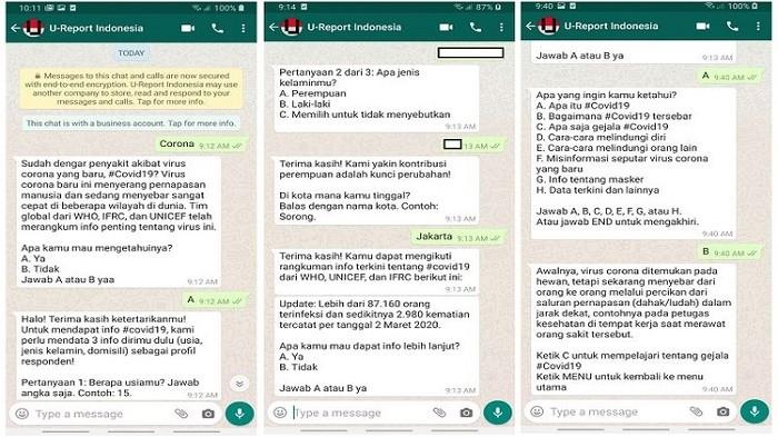 Layanan milik United Nations Children's Fund (UNICEF) ini bisa diakses ke Layanan U-Report dengan chat ke nomor 08119004567.