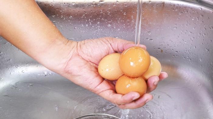 Mencucinya akan menimbulkan risiko yang jauh lebih besar dan mencemari telur yang akan kita makan.