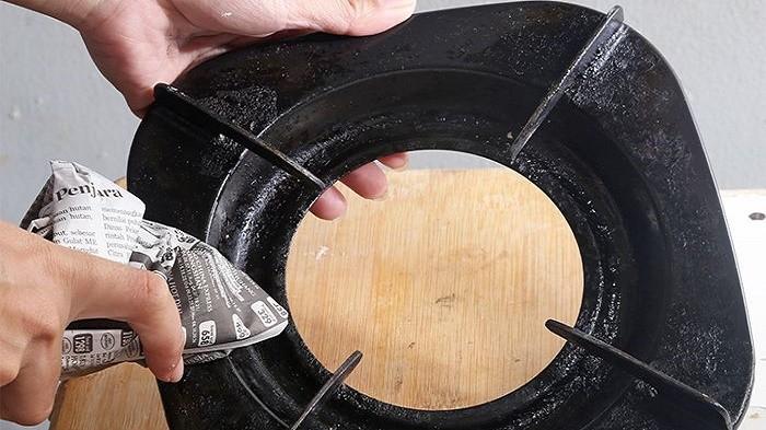 3. Oleskan campuran tadi pada seluruh bagian kompor yang bernoda dan berkerak.