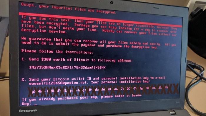 Pemilik komputer diharuskan untuk menebusnya dengan membayar senilai 300 dollar AS dalam bentuk mata uang elektronik Bitcoin.