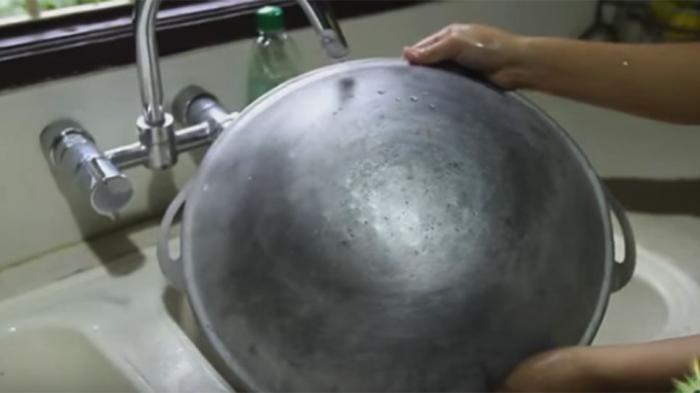 Bagian belakang wajan yang kerap terkena percikan api akan menimbulkan noda hitam yang sulit dibersihkan.
