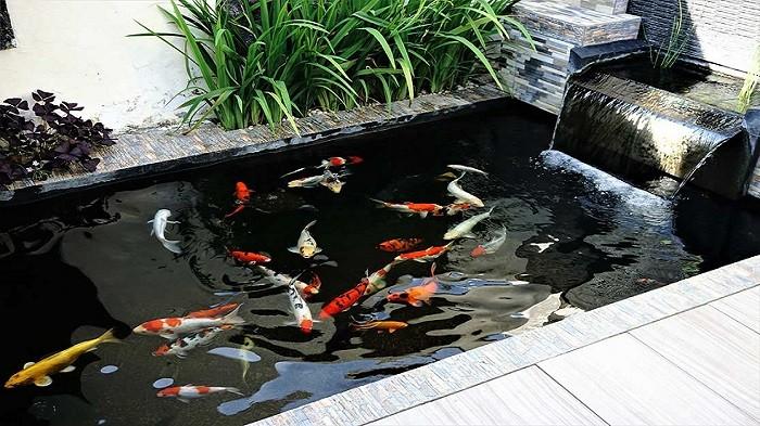 Kolam ikan koi di dalam rumah dapat menambahkan nilai estetika yang dapat membuat rumah menjadi lebih elegan dan dapat memperbaiki taman atau rumah.