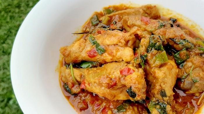 Biasanya ayam woku dimasak dalam porsi besar dalam kuali.
