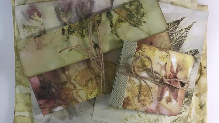 Awalnya daun diletakkan di kain, lalu digulung dan dipanaskan hingga warna daun berpindah ke kain.