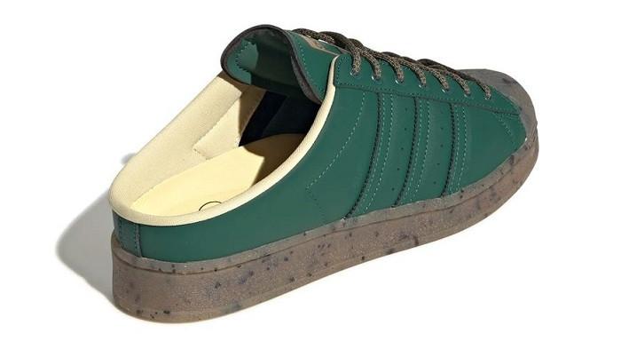 Alhasil, Superstar Mule Adidas Originals dengan warna "Collegiate Green/Easy Yellow" pun dibuat menggunakan kulit dengan bahan vegan.
