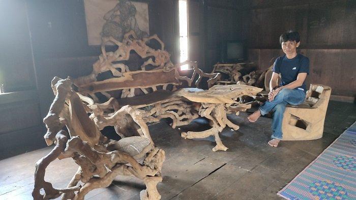Kerajinan kursi dan meja tamu dari limbah pohon kopi ini juga bernilai seni.