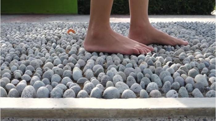 Terlepas dari kebenaran merangsang titik meridian, menginjak kerikil menimbulkan trauma mekanik pada telapak kaki (saraf, otot, dan urat).