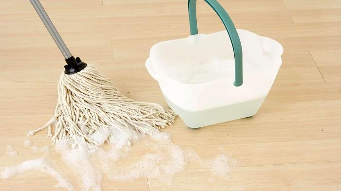 Setelahnya, pel lantai menggunakan air hangat yang dicampur dengan pembersih lantai dengan kadar pH yang rendah.