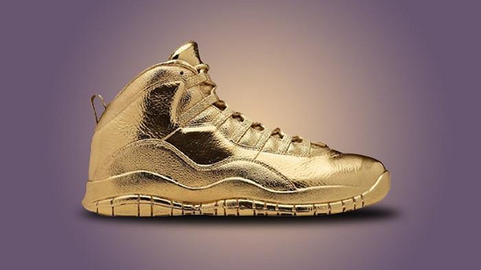 Rapper Drake dan Nike pernah berkolaborasi untuk menghasilkan siluet Solid Gold OVO Nike Air Jordan 10.