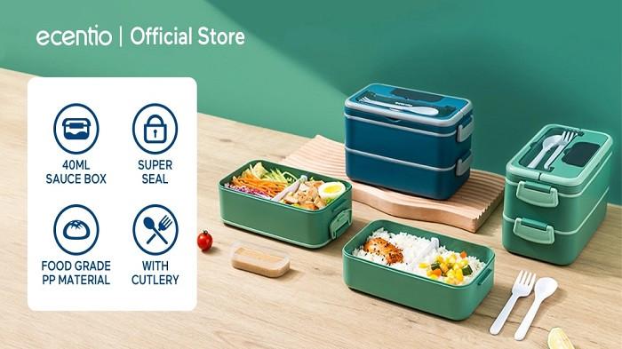 Beli Disini Ecentio kotak makan set Lunch box anti Bocor BPA Free