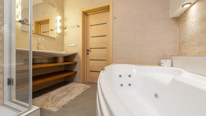 Contohnya, jika kamu memiliki kamar mandi kering dengan tirai, sehingga pintu akan minim terkena air.