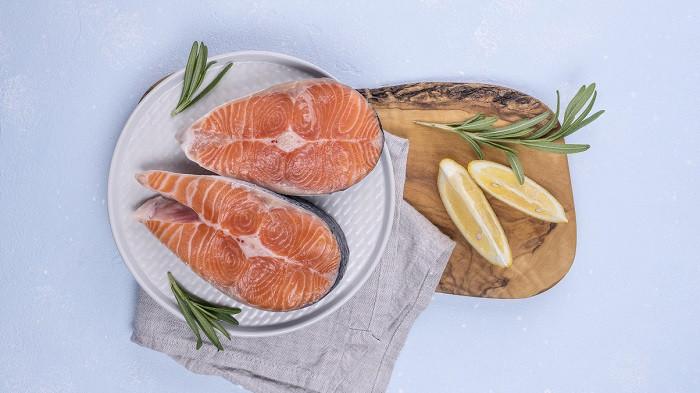 Salmon adalah ikan kaya protein lainnya dengan lemak omega-3 yang menyehatkan jantung dan vitamin B, potasium, dan selenium.