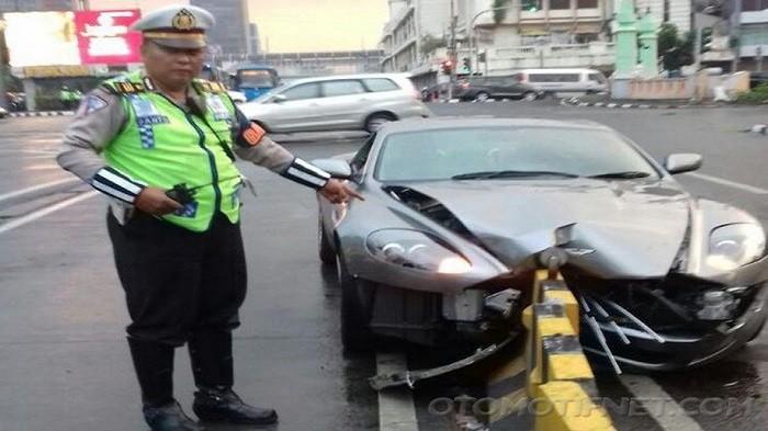 Yes, berdasar postingan Twitter TMC Polda Metro Jaya, mobil mewah itu adalah Aston Martin yang menabrak separator busway di kawasan Harmoni, Jakarta Pusat.