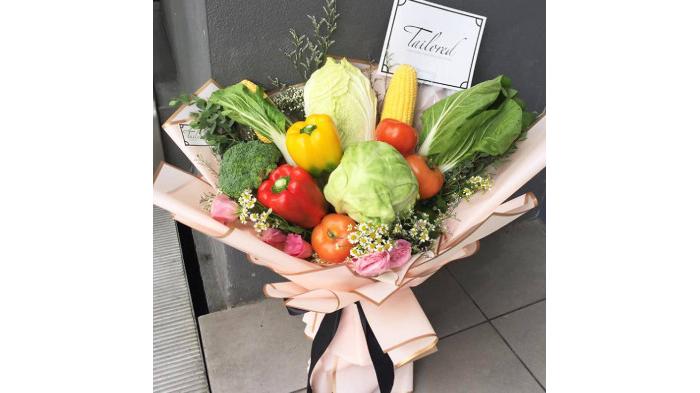 Kamu bisa pilih karangan sayur saja agar lebih menarik.