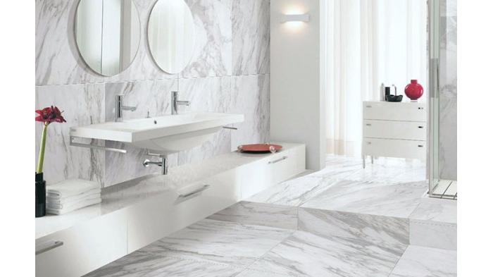Lantai granit punya banyak motif, ini juga menambah keindahan kamar mandi.
