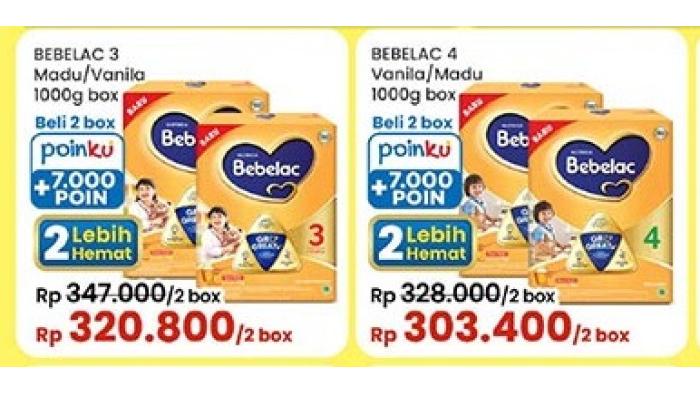 Sementara di Indomaret Bebelac 4 kemasan 620 gram harganya Rp 209.900 untuk 2 box.