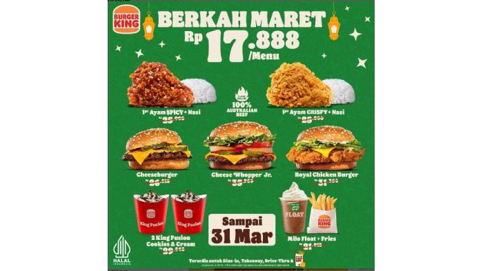 Promo ini berlaku sampai 31 Maret 2024 di semua outlet Burger King.