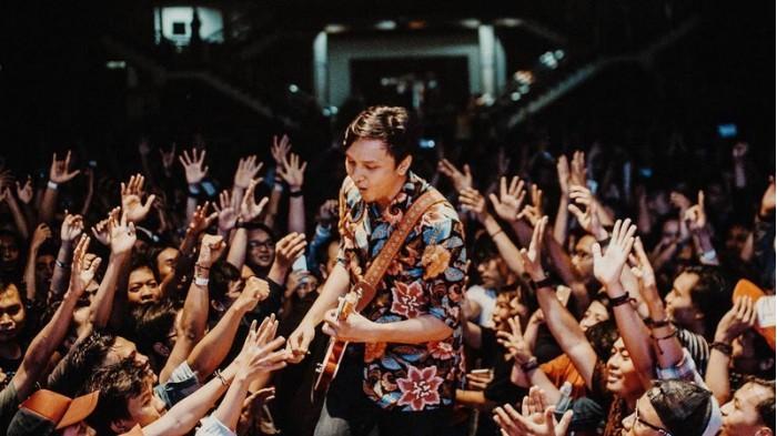 Tak hanya di Hari Batik Nasional, gitaris band Barasuara selalu memakai batik saat di atas panggung.