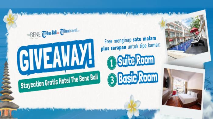 Tribun-Bali.com dan TribunTravel.com bekerja sama dengan The Bene Bali Hotel mengadakan GIVEAWAY seru untuk kamu yang ingin menikmati liburan gratis di Pulau Dewata.