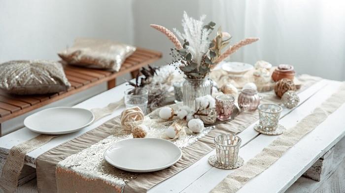 Kamu juga bisa menambahkan hiasan meja berbahan alami seperti keranjang dari rotan atau sendok garpu kayu yang memberi sentuhan alami dan ramah lingkungan.