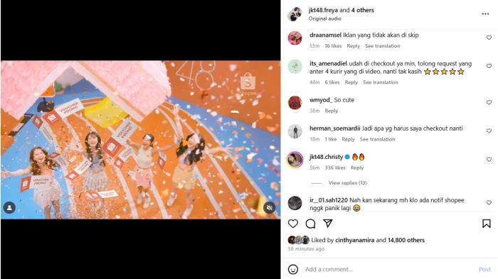 Banyak yang menyampaikan antusiasme dan apresiasi lewat kolom komentar, menyebut kolaborasi Shopee dan JKT48 ini sebagai keseruan “Iklan yang tidak akan diskip” dan membuat ingin “auto checkout”.
