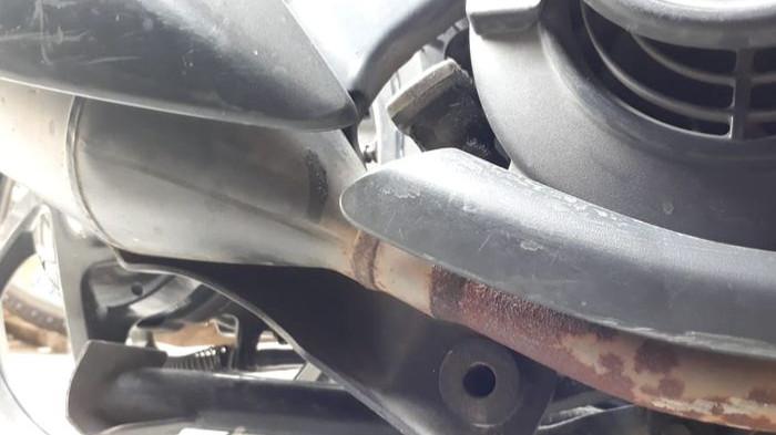 Karat menjadi penyebab utama knalpot bocor, terutama pada motor yang sering terkena air hujan atau digunakan di daerah lembap.