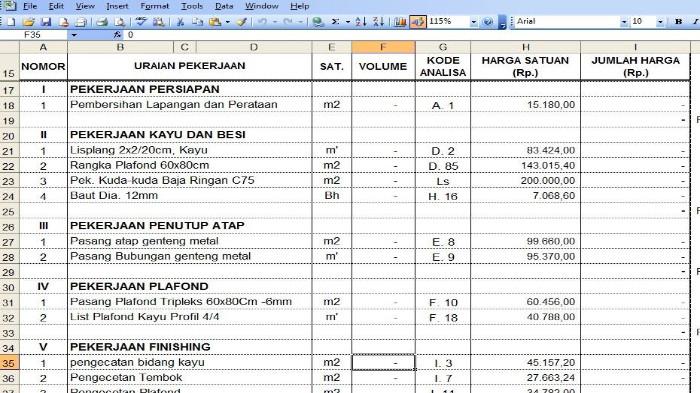 Kontraktor yang baik akan memberikan RAB (Rencana Anggaran Biaya) yang jelas, mulai dari jenis material, volume pekerjaan, hingga estimasi biaya tenaga kerja.