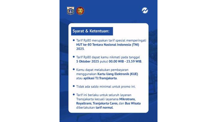 Tarif ini sebagai perayaan HUT ke-80 dari Tentara Nasional Indonesia (TNI).