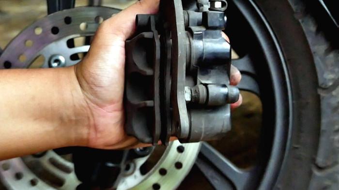Lakukan pelepasan secara hati-hati agar tidak merusak dudukan kaliper maupun komponen lain di sekitarnya.