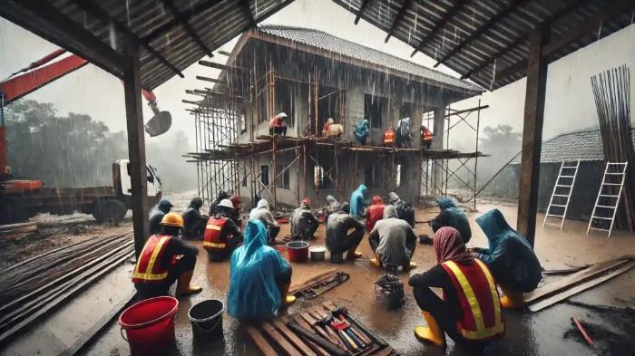 Curah hujan yang tinggi bukan hanya memperlambat pekerjaan, tetapi juga berisiko menurunkan kualitas bangunan jika tidak diantisipasi dengan baik.