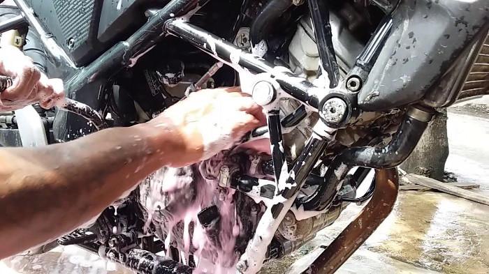 Banyak pemilik motor menggunakan deterjen pakaian atau sabun cuci piring untuk membersihkan motor.